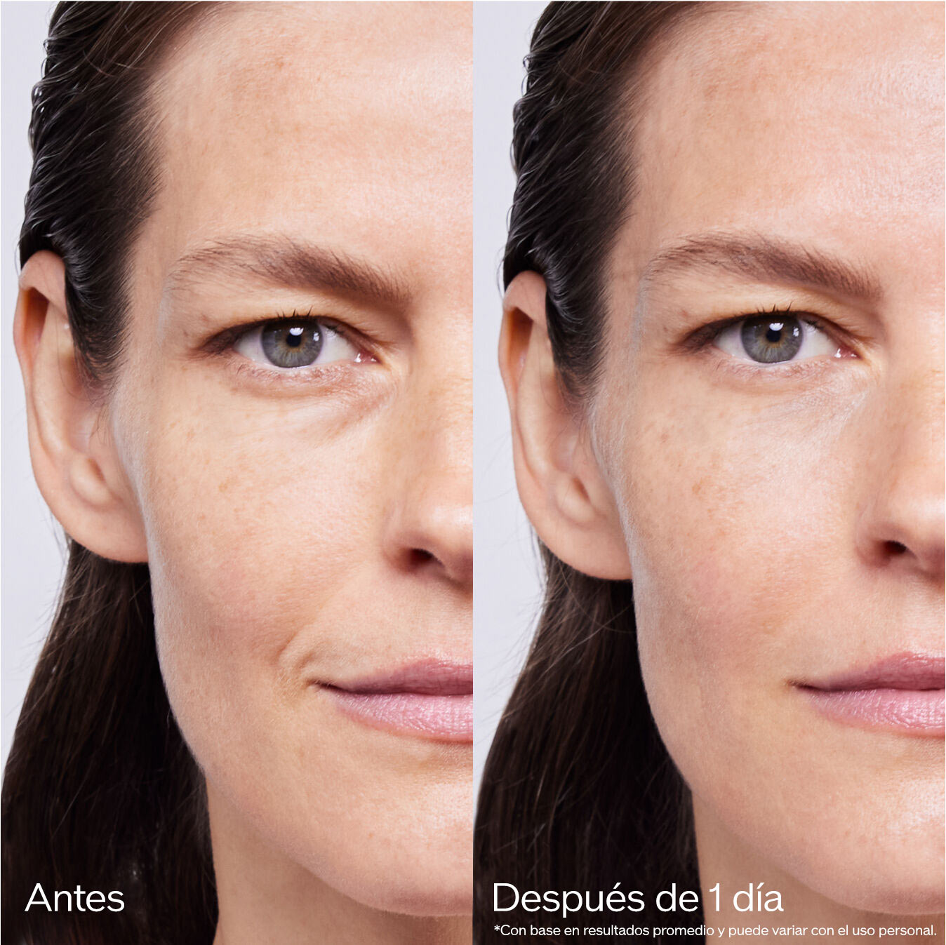 Mejora la elasticidad de la piel, mientras que las arrugas en las mejillas, debajo de los ojos, los pliegues nasolabiales (líneas de expresión) y las patas de gallo son menos visibles en 2 semanas.**