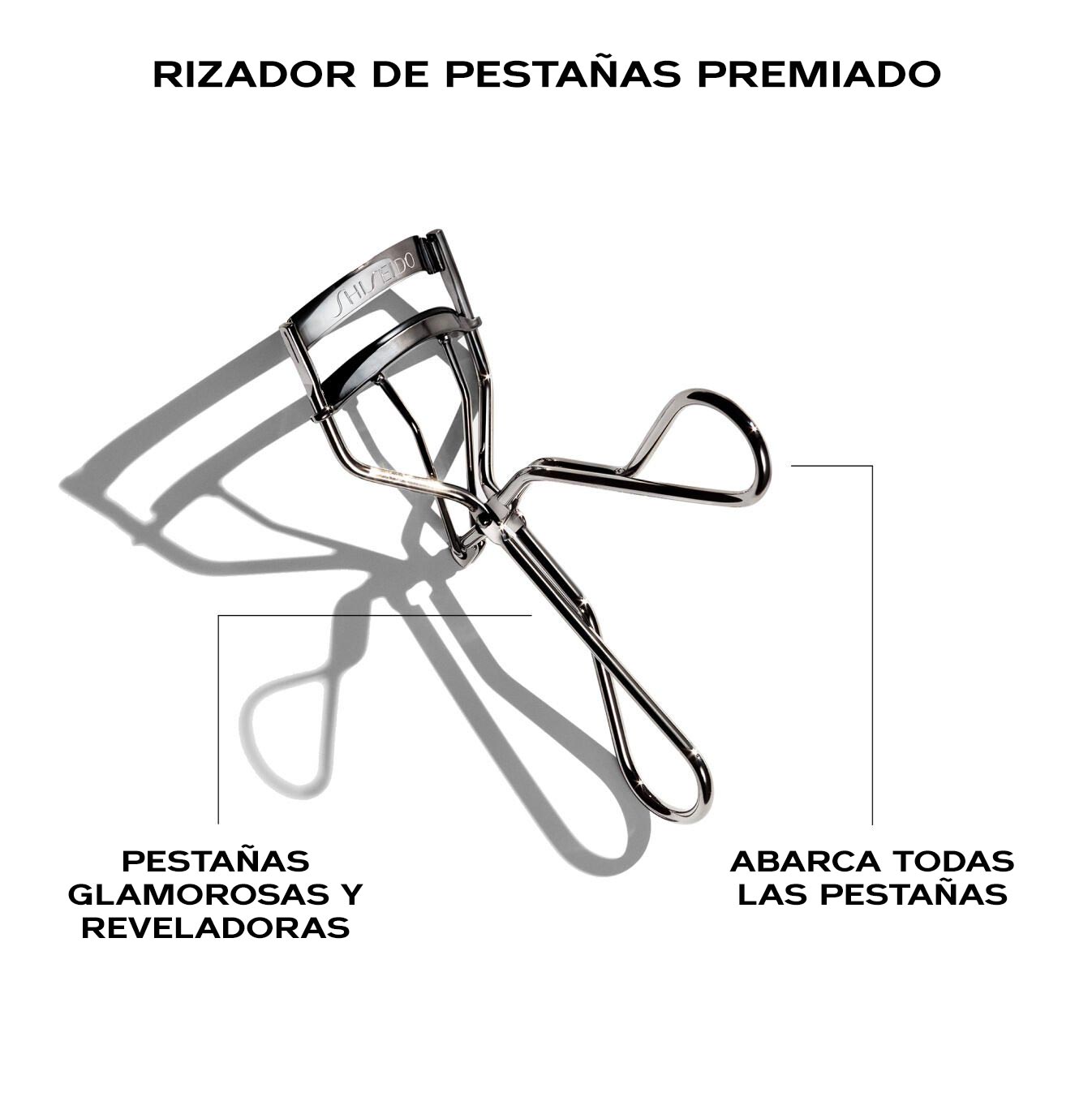 - La amplia curva riza las pestañas desde la esquina interior hacia la exterior