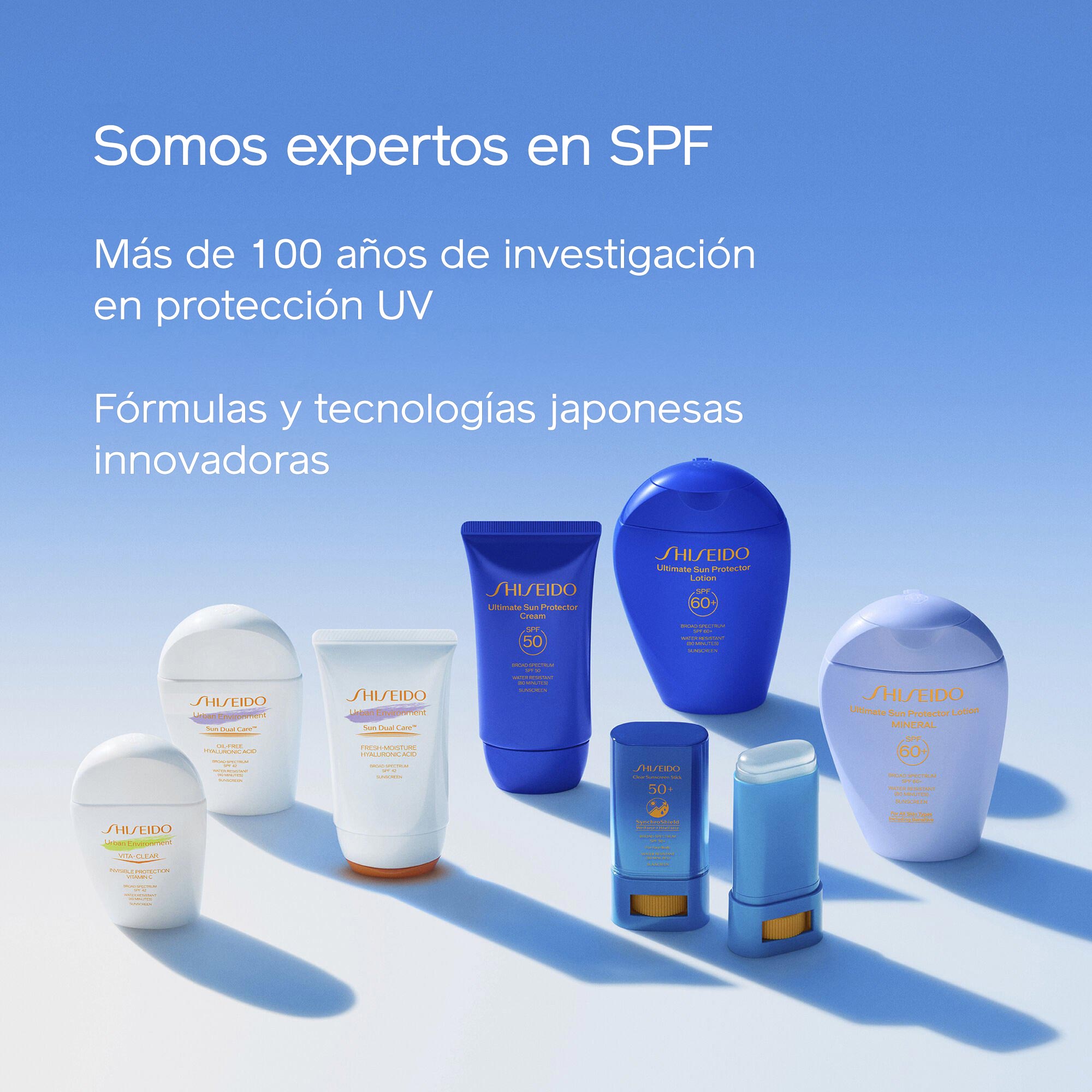- SPF 50+ de amplio espectro que protege contra los rayos UVA/UVB