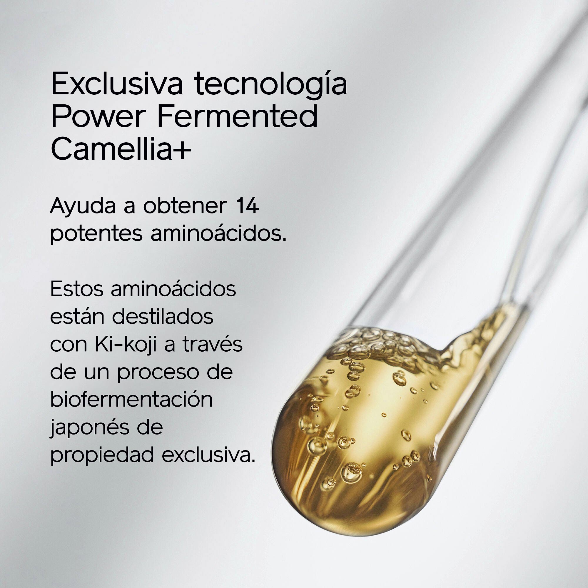 • La exclusiva tecnología Power Fermented Camellia+ ayuda a obtener 14 potentes aminoácidos, destilados mediante un proceso de biofermentación japonés de propiedad exclusiva con Ki-koji para penetrar en profundidad*⁴ y que la piel luzca rejuvenecida.