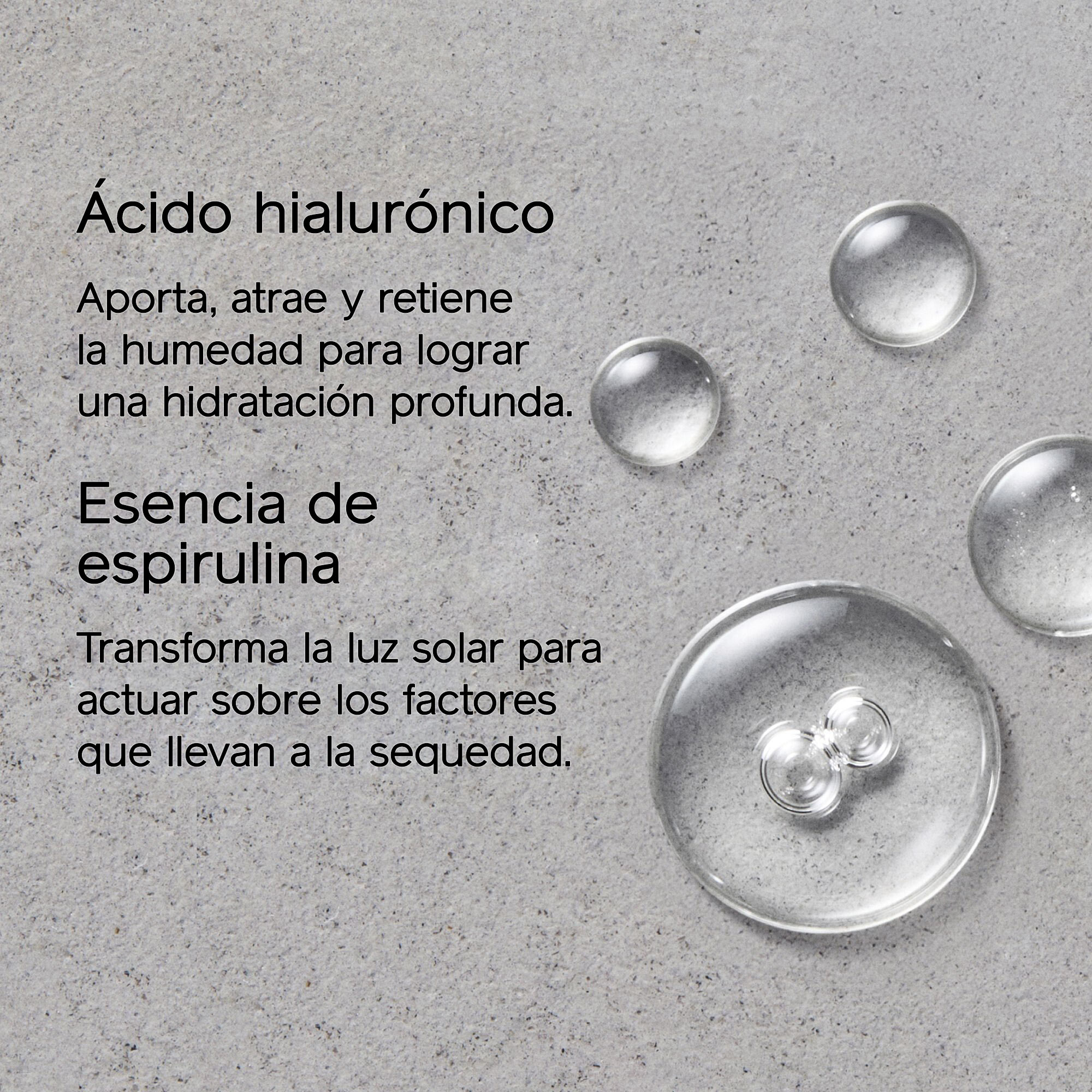 - Esencia de espirulina: transforma la luz solar para actuar sobre los factores que llevan a la sequedad.