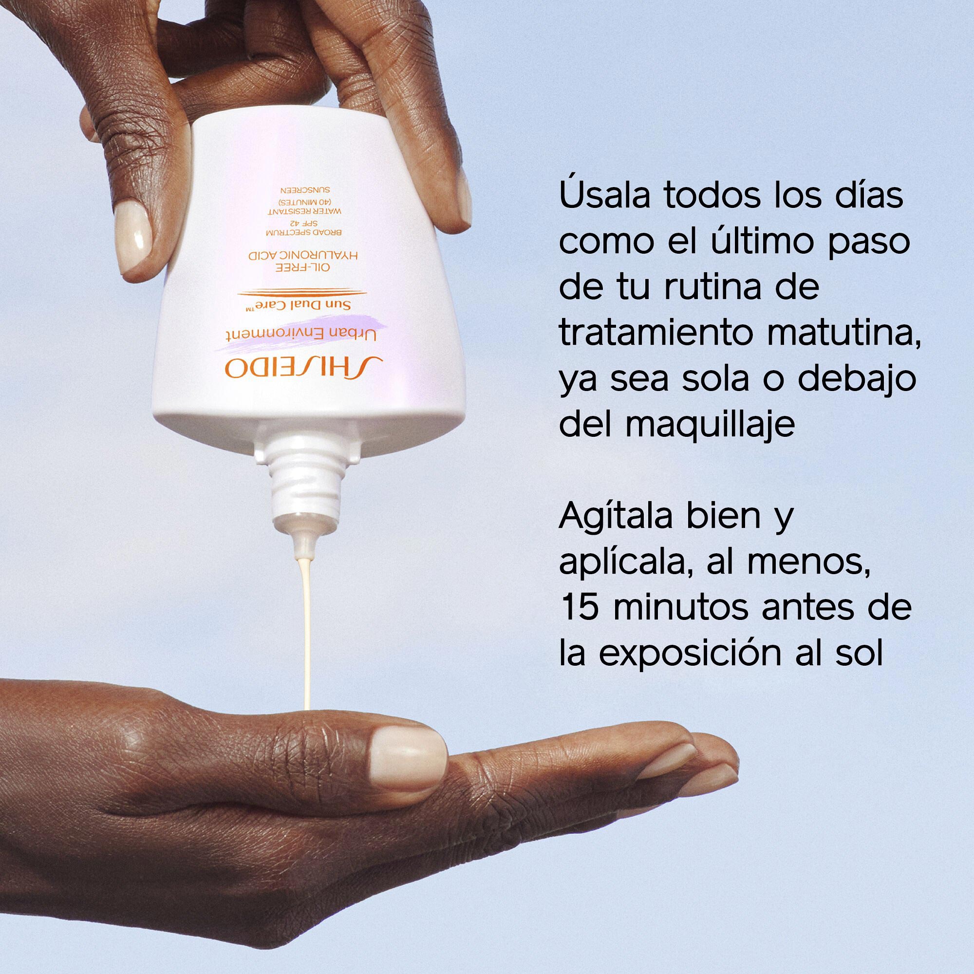 El nuevo Urban Environment Oil-Free Sunscreen SPF 42 es más que un protector solar, es un tratamiento potenciado por el sol. Nuestra tecnología Sun Dual Care™ con ácido hialurónico protege la piel contra los dañinos rayos UV y la polución, y potencia el poder del sol para intensificar la hidratación y lograr una piel mate suave los 365 días del año.
